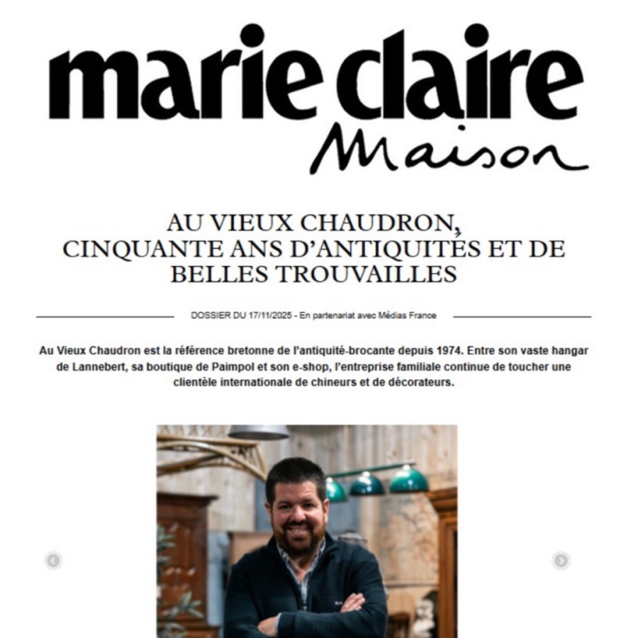 Un bel article consacré Au Vieux Chaudron dans les adresses incontournables de Marie Claire Maison !
